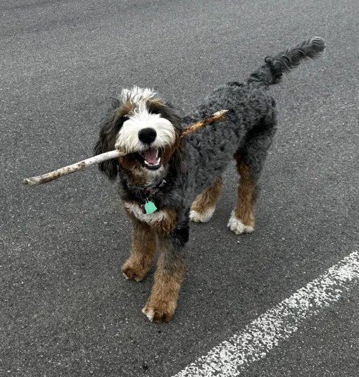 Scottie ist eine Standard Ultra Multigen Bernedoodle-Hündin mit einem Gewicht von 27 kg. Sie steht für Kraft, Stabilität und eine souveräne Präsenz innerhalb des größeren Bernedoodle-Typs. Ihr klar proportionierter Körperbau und ihr ruhiges Auftreten spiegeln eine gezielt aufgebaute Multigen-Linie wider.