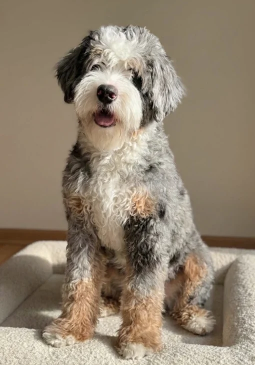 Smokey ist ein multigenerationeller Ultra Mini Bernedoodle mit einem Gewicht von 16 kg. Er vereint kompakte Größe mit spürbarer Substanz und einer klaren, stabilen Präsenz. Seine Erscheinung wirkt ausgewogen, sportlich und strukturiert – genau jene Balance, die im Ultra Mini Segment besonders geschätzt wird.